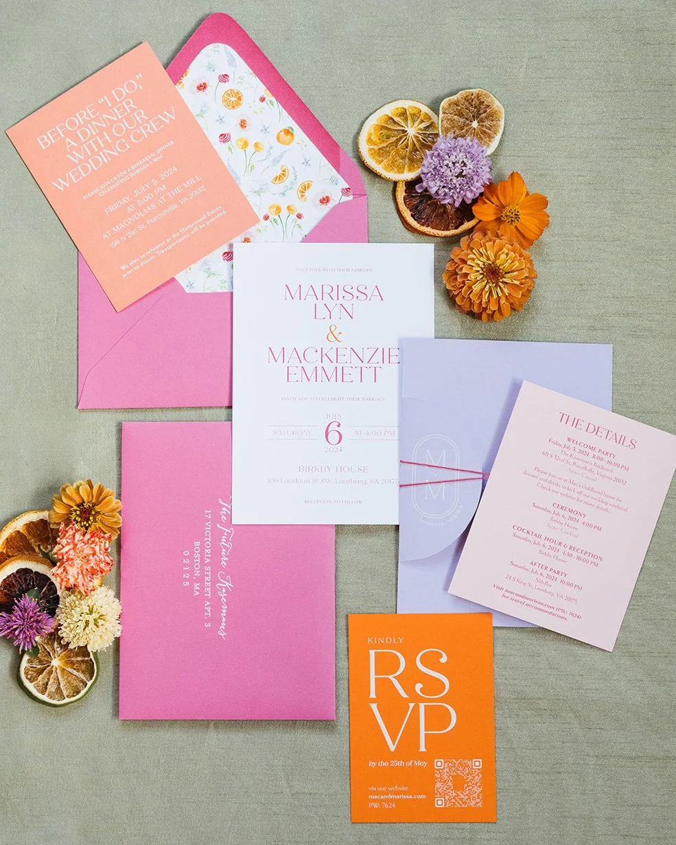 From logos, to invitations, to welcome bag newspapers to every piece of signage, I thoroughly enjoy bringing a couple’s wedding vision to life. Shown here are custom designed/made invitations, along with signage and menu examples.