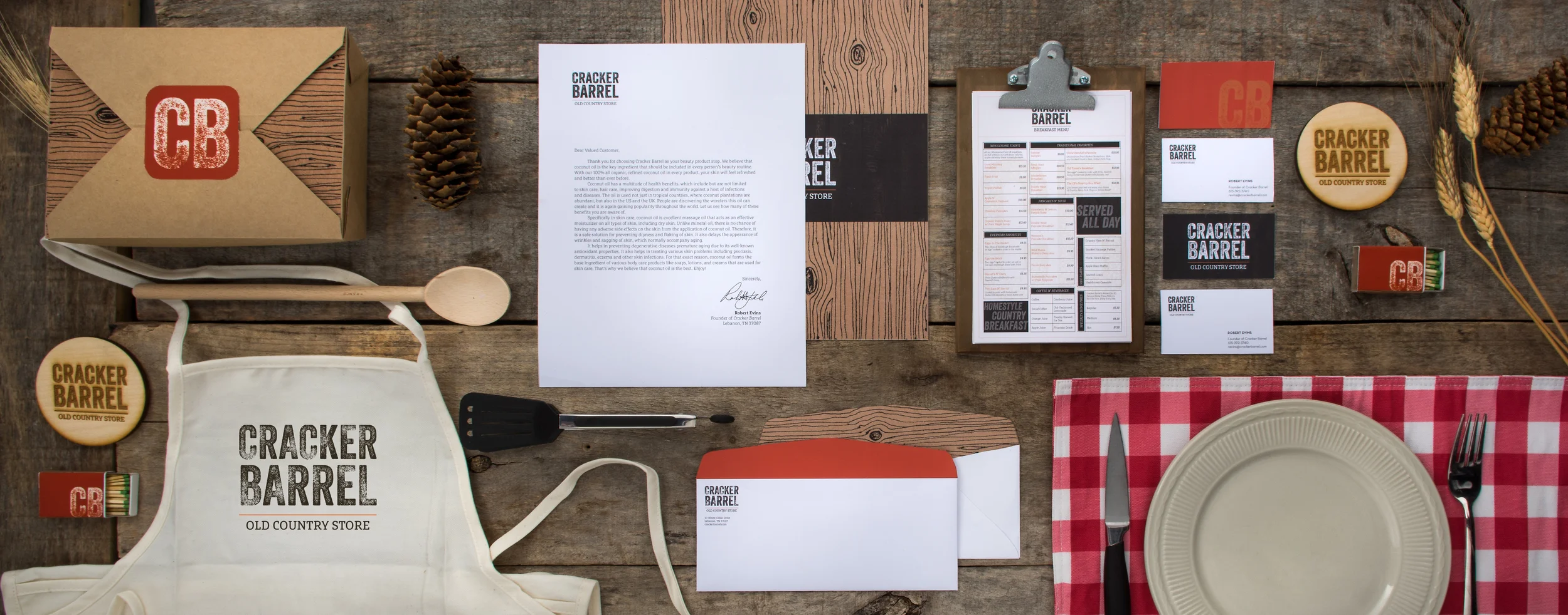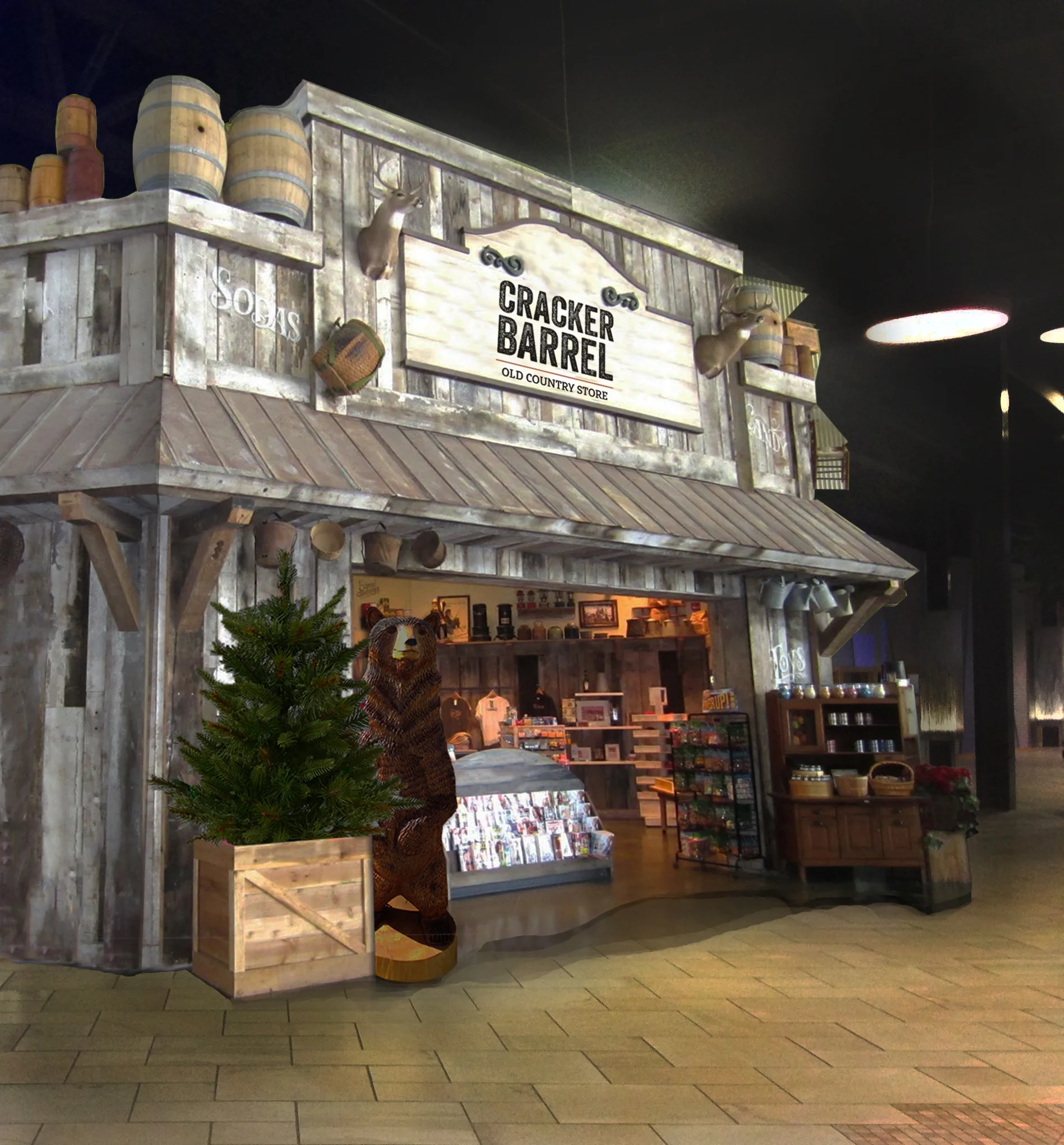 Cracker Barrel, an American chain restaurant and gift store, has been pleasing people since 1969. Its southern country theme, a classic for years, desperately needed an upgrade. This rebrand celebrates the comfort and hominess of the old brand we all know and love into a new location: the shopping mall. So eat, shop, relax and we’ll take care of the rest.