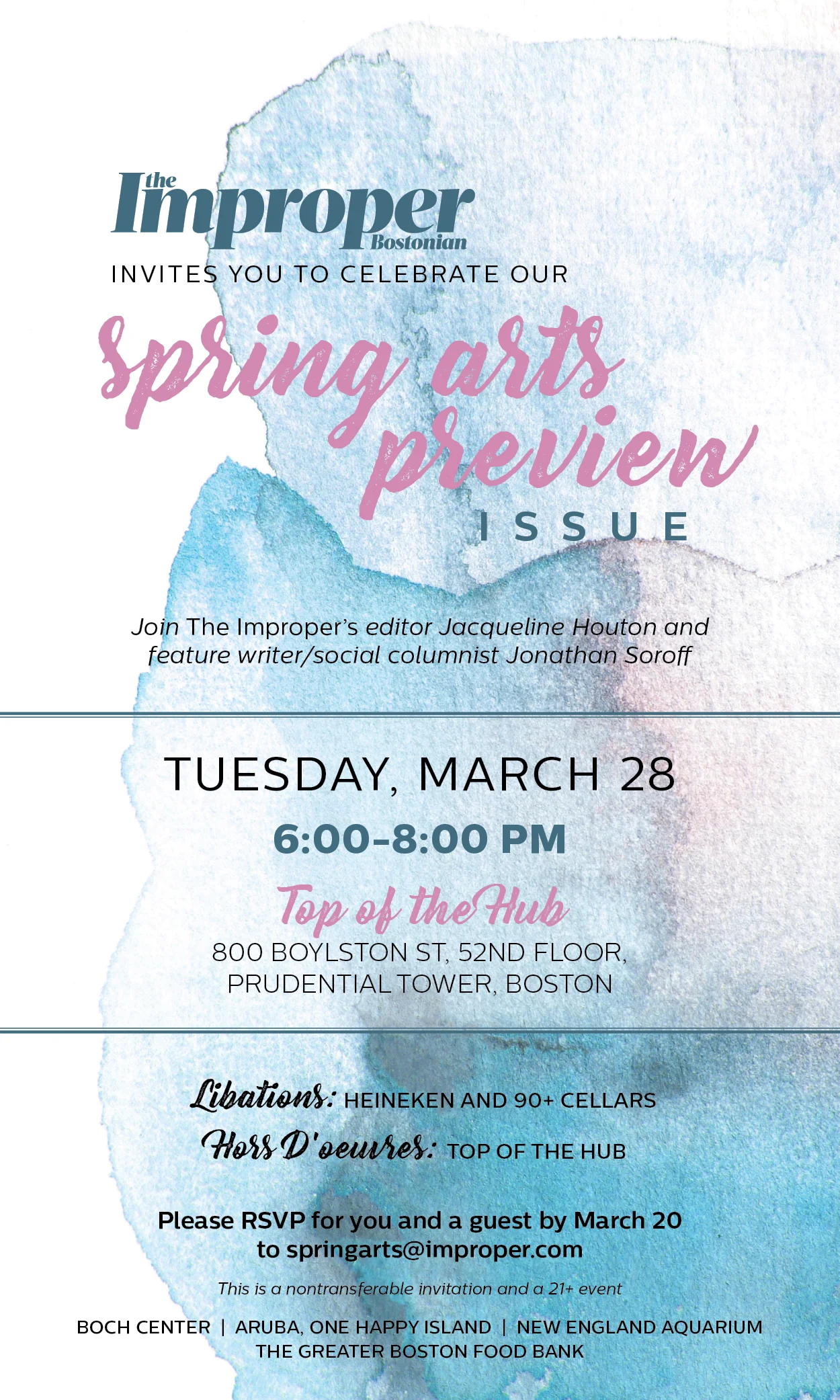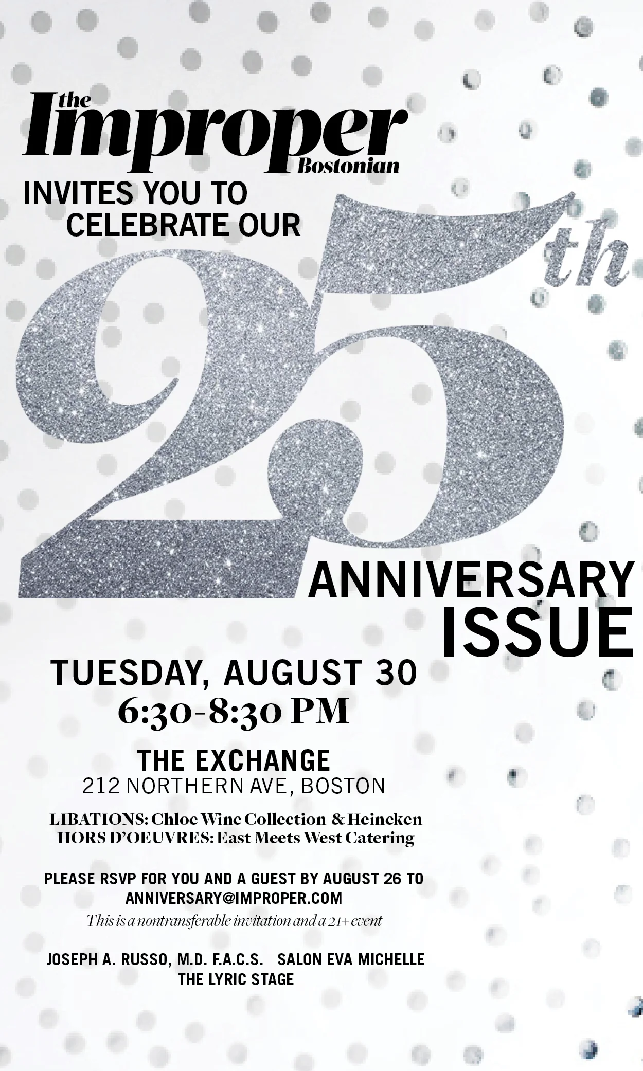 At The Improper, I created the collateral for our issue launches/events along with basic marketing materials. Some examples of the invitations I've designed are below, along with a sample sales presentation designed in Powerpoint to match our brand style/colors for employees to use when pitching clients.