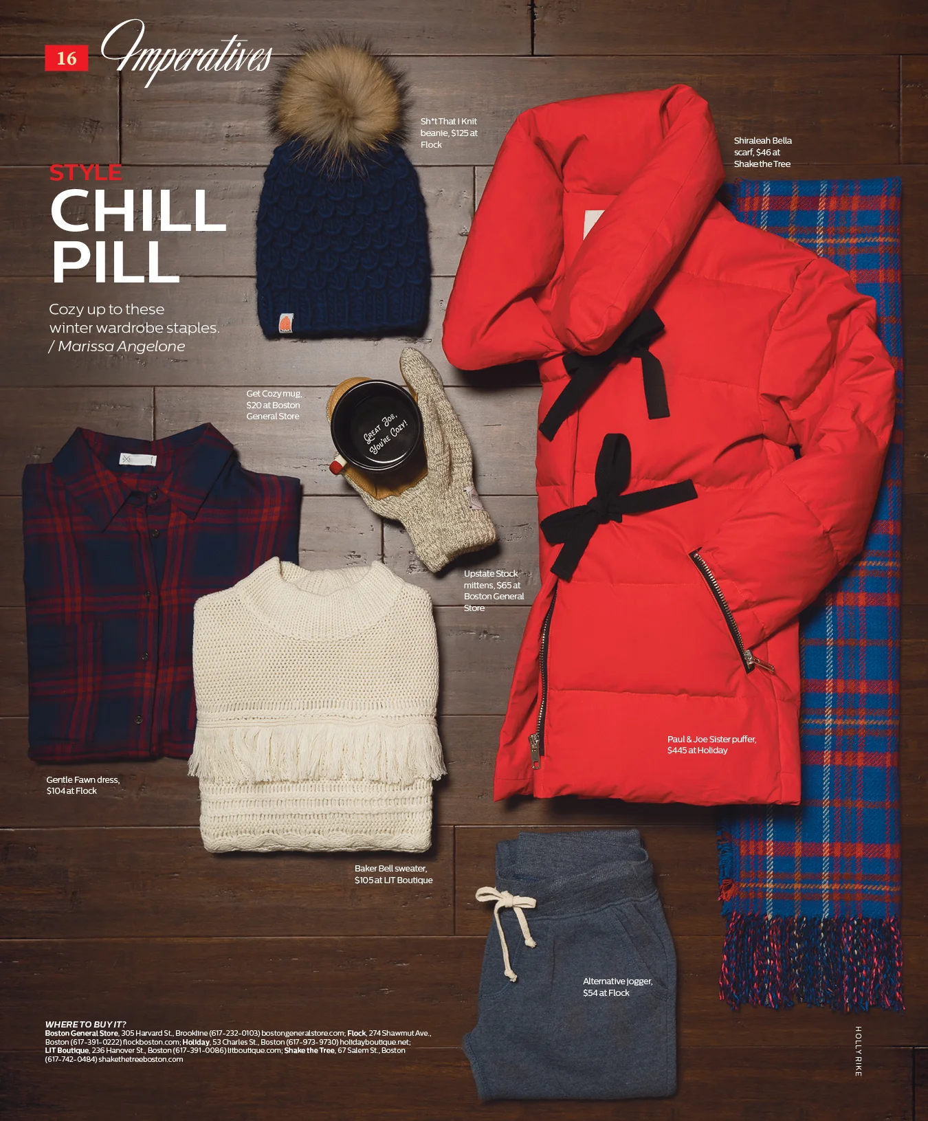 I led the annual Holiday Gift Guide project that ran in the November 2018 Holiday Shopping issue of The Improper Bostonian. That process included the ideation of the theme behind the guide, pulling all products from local stores, grouping gifts accordingly, art directing and styling the photography. I also managed and produced the Style Page, which is a column that ran in every issue of the bi-weekly magazine. Below are some examples. The Style page process entailed pitching ideas, pulling products, art directing the photos, and lastly, designing the page itself.